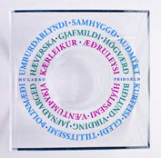 Eitt af því sem er sameiginlegt helstu trúarbrögðum heims eru ORÐIN sem sett eru fram á þessari skál, þeim raðað upp í þrjá hringi því talan 3 er heilög og máttug á margan hátt.